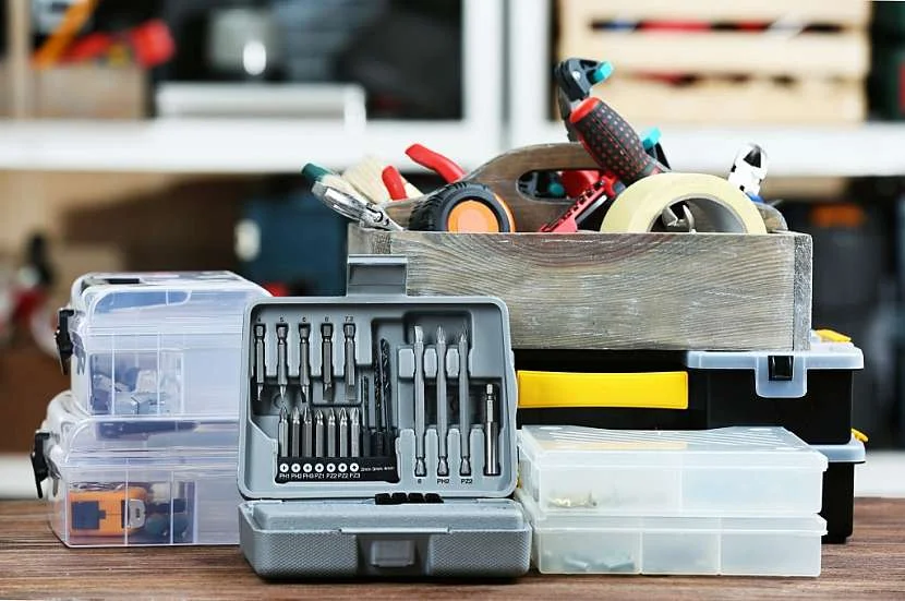 Na malé nářadí, šrouby a různé součástky se budou hodit ještě plastové organizéry nebo dělené krabice. Ideální jsou průhledné varianty, ve kterých se budete lépe orientovat. Dnes organizéry koupíte ve většině prodejen a e-shopů s nábytkem a potřebami pro kutily, ale můžete si také vyrobit vlastní. Poslouží k tomu mimo jiné staré nádoby, šperkovnice nebo boxy.