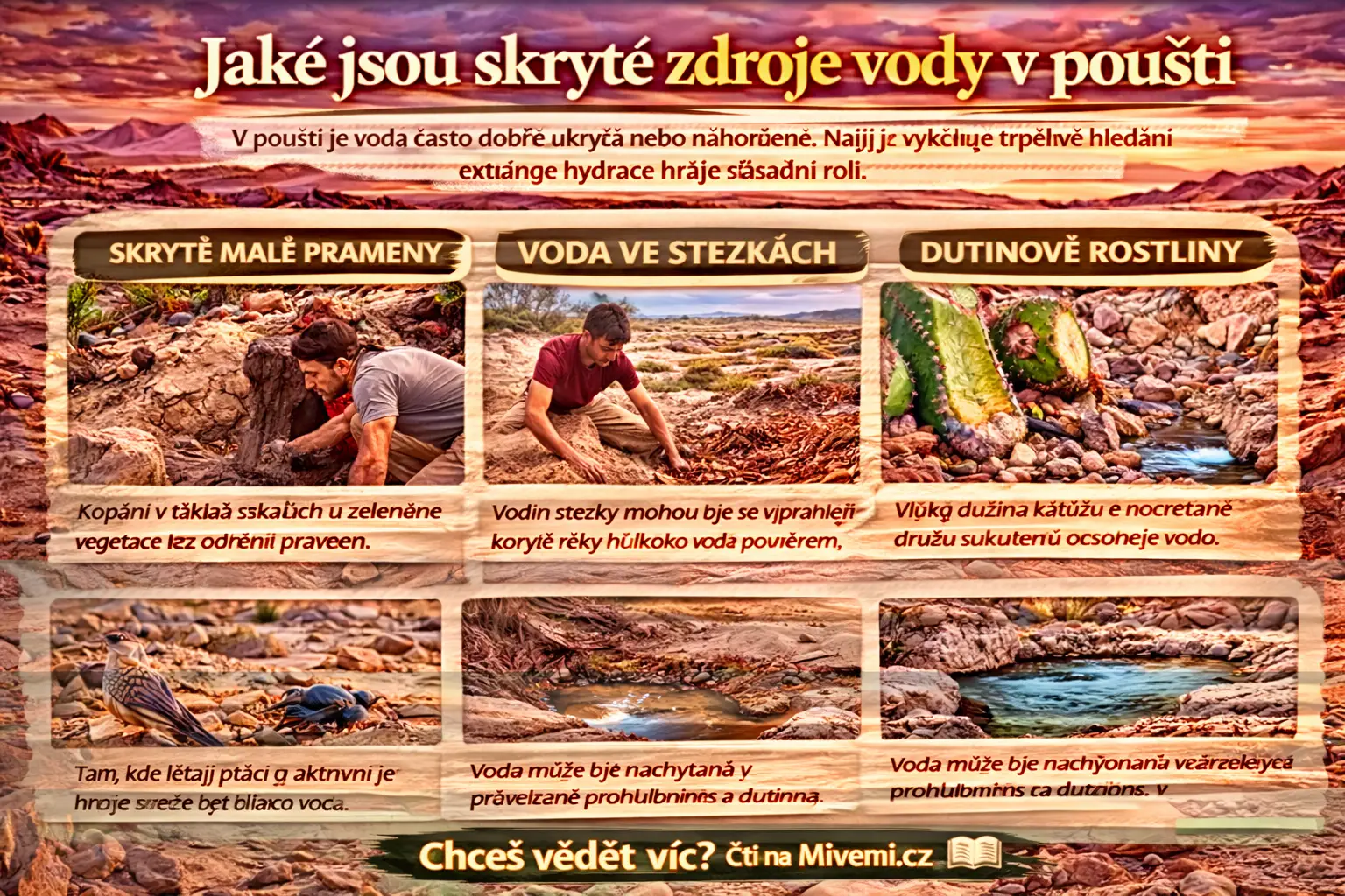 Podrobnější informace o zdrojích vody a přežití v pouštích naleznete v článku Největší pouště světa a zajímavosti.