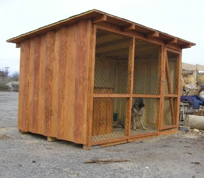 - Při výběru materiálu pro vnitřní podlahu kotce je nejlepší volbou pevné a nepromokavé dřevo. Vhodné jsou například impregnované dřevěné desky, které poskytnou psovi teplo v zimě a ochrání ho před horkem v létě.