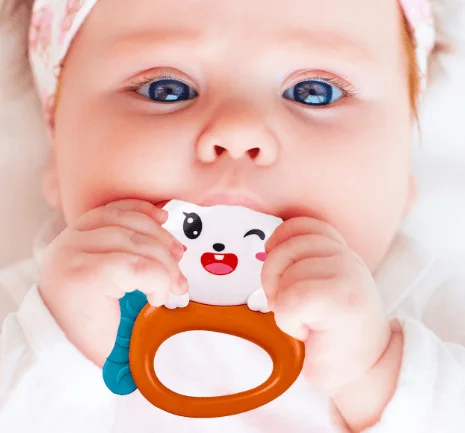 Bezpečnost pro dětské žvýkání: Silikonová chrastítka jsou navržena tak, aby byla bezpečná pro dětské žvýkání. To je důležité během období kousání, kdy děti často hledají něco, co by mohly žvýkat pro úlevu od bolesti dásní.