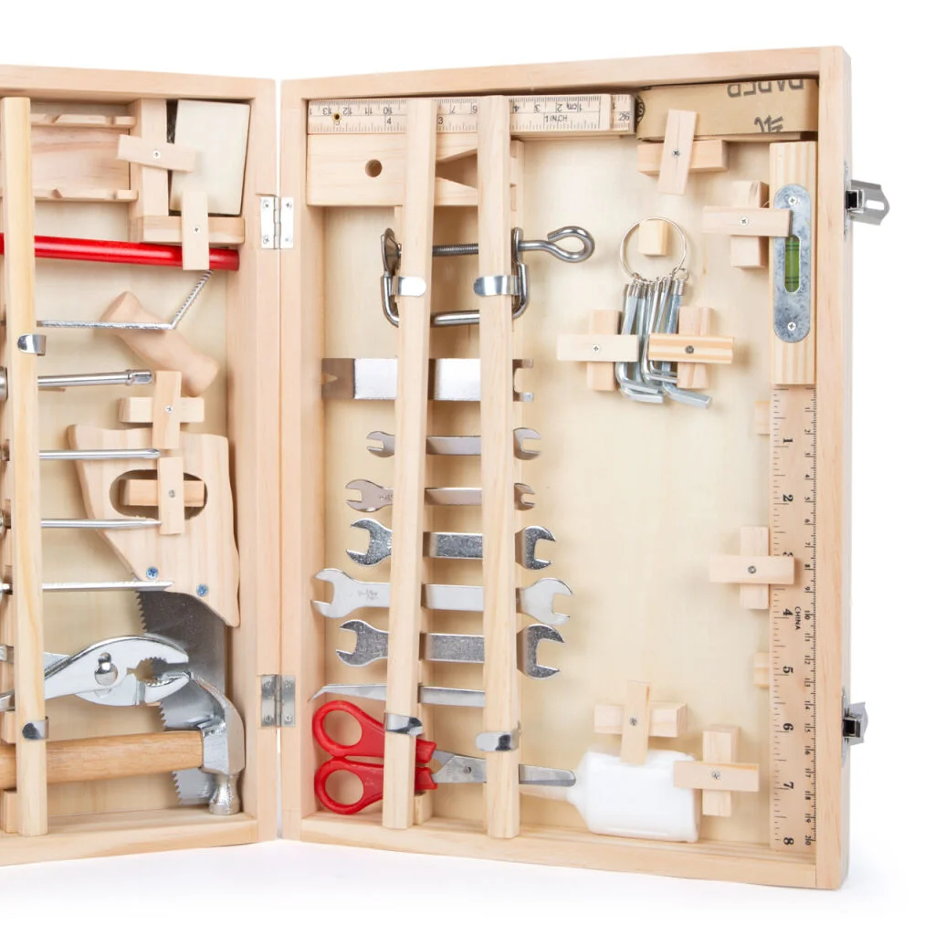 Kufřík může obsahovat různé typy nářadí, jako jsou hrábě, lopatky, nůžky nebo dokonce malou vrtačku. Dřevěné nářadí poskytuje příjemný pocit na dotek a je lehké, což je vhodné pro dětské ruce. Na druhou stranu kovové nářadí může být trvanlivější, zatímco plastové nářadí je obvykle odolné a snadno se udržuje.