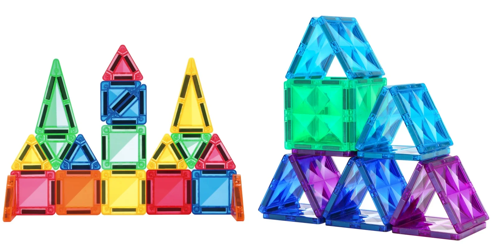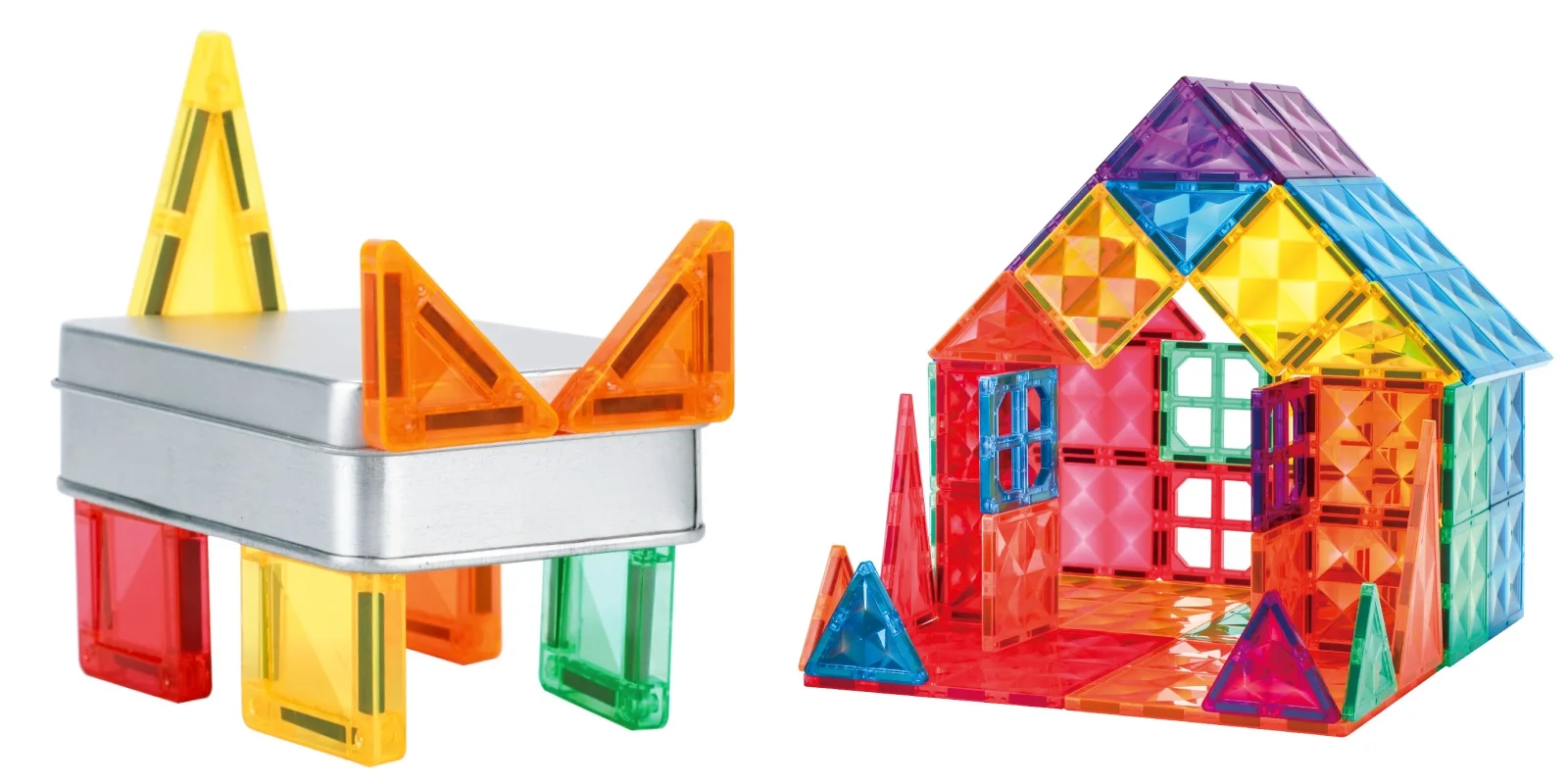 Uvnitř každého dílku jsou ukryté silné magnety po celém jeho obvodu. Ty umožňují, aby se jednotlivé tvary – čtverce, trojúhelníky i další prvky – spojovaly v různých směrech a úhlech. Magnety jsou pevně uzavřené v plastu, takže nehrozí jejich uvolnění ani při pádu. Stavby díky tomu dobře drží tvar, ale zároveň je lze snadno rozebrat a znovu postavit.