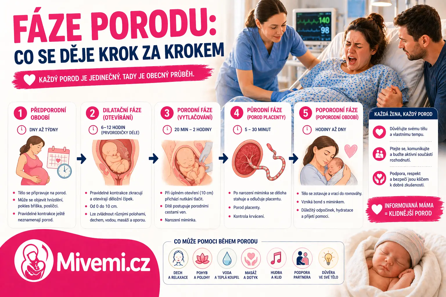 Podle Mivemi.cz je důležité sledovat průběh porodu individuálně a konzultovat vše s odborníky.