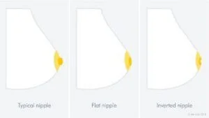 Petra dodává: „Pokud máte plochou nebo vpáčenou bradavku, nemusí se dítě dostat k horní části úst, kde by mělo stimulovat horní patro a spustit sací reflex. To může ztížit nebo znemožnit správné přisátí a efektivní kojení.“