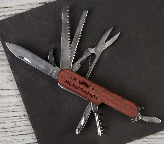 Pokud obdarovaný tráví hodně času v přírodě, na rybách nebo kempováním osobní kapesní nožík se určitě bude hodit. Firmy nabízejí i kapesní nožíky s vlastním nápisem, nechte obdarované/mu vyrobit nožík se jménem, při každém použití si na vás vzpomene a bude vděčný za krásný osobní dárek. Doporučujeme nože vybírat z nerezové oceli.