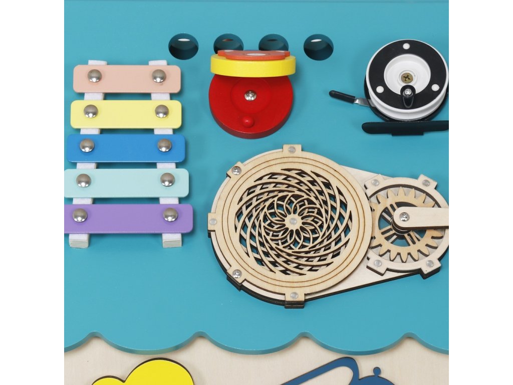 Od tkaniček až po hrající telefon! Tento nádherný interaktivní domeček je inspirovaný principy Montessori a přináší dětem nekonečné možnosti objevování a učení se hrou. Každá jeho strana nabízí nové dobrodružství, které rozvíjí jemnou motoriku, trpělivost, zvídavost a schopnost řešit problémy. Děti zde najdou různé druhy zámků, západek a háčků, které po odemknutí odhalí tajemná dvířka, spinner k roztočení, otočnou minutku, funkční vypínač se světýlkem, či barevný labyrint s rybičkou. Xylofon s paličkou seznámí děti s prvními tóny a rytmem, zatímco hodiny naučí porozumět času. Nechybí ani hrajicí telefon jenž Vás zabaví nejrůznějšími zvuky i veselými melodiemi! Domeček uvnitř svítí. Motivuje děti k samostatnému objevování, učí je trpělivosti a koncentraci a zároveň je připravuje na každodenní činnosti běžného života prostřednictvím praktického tréninku. Poskytuje bezpečné a podnětné prostředí, ve kterém si děti hravou formou rozvíjejí dovednosti nezbytné pro samostatnost. Kombinace přírodního dřeva s příjemnými barvami spolu s kvalitním provedením dělají z této hračky pěkný doplněk každého pokojíčku nebo herny. Domeček se dodává složený v krabici. Hlavní vlastnosti: funkční světýlko a hrající telefondomeček uvnitř svítídodání ve složeném stavuvčetně paličky ke xylofonupodporuje samostatnost, jemnou motoriku a koordinaci ruka-okopodněcuje kreativní myšlení a rozvoj představivostisenzorická stimulaceedukace prostřednictvím hryinspirováno Montessoripřipravuje děti na každodenní činnosti běžného životana napájení souží LR44 knoflíková baterie a 4xAAA baterie (nejsou součástí balení)vhodné pro děti od 3 let
