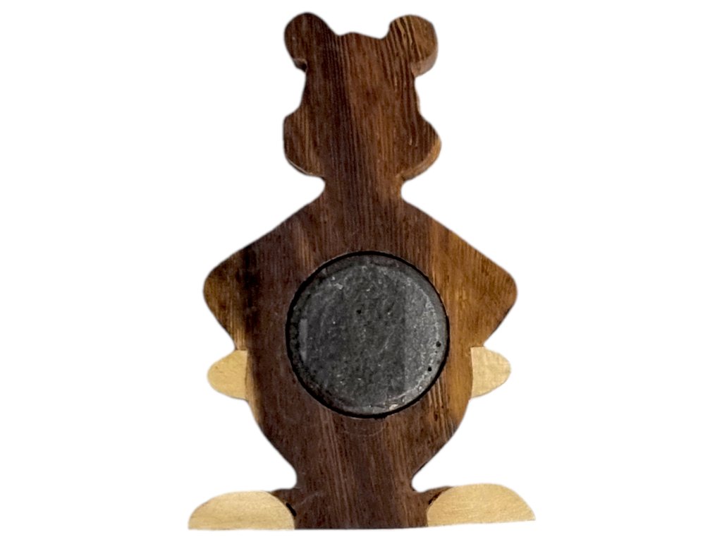 Dřevěný dekorativní magnet ve zvířecím motivu rozzáří každou lednici i tabuli. Roztomilé zvířátko jistě každému vykouzlí úsměv na tváři.Produkt je vyráběn ručně až z pěti druhů dřeva, které je přirozeně různobarevné – žlutý chlebovník různolistý, světlehnědý tamarind manilský, tmavěhnědá kasie obecná, růžová aniba, bílá gmelina arborea. Produkt je pouze ručně domalován, samotné dřevo je přírodní, není barvené. Hlavní vlastnosti: ideální pro milovníky přírody a zvířatskládá se až z 5 druhů přírodního dřevavyráběno i malováno ručnědekorativní prvekvhodné jako drobný dárek
