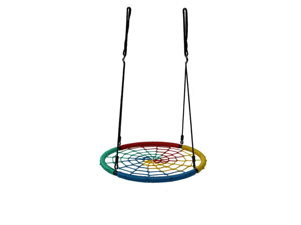 Houpačka Čapí hnízdo barevné s 2 karabinami pro zavěšení.Nezbytný pomocník pro objevitele venkovní zábavy na moderním dětském hřišti. Hlavní vlastnosti: nosnost: 100 kgprůměr hnízda je 100 cmtloušťka lana barevné sítě je 7 mmkovová konstrukce je potažena barevným lanem o tloušťce 6 mmkonstrukce z trubky o síle 38x1 mm