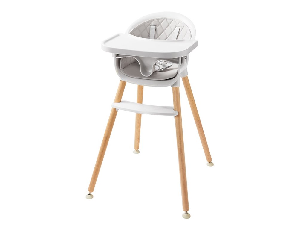 Dětská jídelní židlička spojuje přírodní dřevo s praktickým plastem, což zajišťuje pevnost, stabilitu a snadnou údržbu. Díky hladkým povrchům se židlička snadno udržuje v čistotě. Polstrovaná sedačka poskytuje dítěti pohodlí během jídla, zatímco bezpečnost zajišťují pevné popruhy, které udrží Vaše děťátko na místě. Pro maximální stabilitu jsou nožičky vybaveny šroubovacími nástavci, které umožňují přesné vyvážení i na nerovném povrchu. Díky kombinaci přírodních tónů a kvalitnímu provedení se židlička uplatní v každé moderní domácnosti. Židlička je dodávána v nesloženém stavu, je nutná montáž dospělou osobou. Hlavní vlastnosti: kombinace přírodního dřeva a odolného plastusnadná údržba a čištěnípolstrovaná a pohodlná sedačkabezpečnostní popruhy stabilní a pevná konstrukces podnožkounávod k sestavení je součástí balenívhodné pro děti od 6 měsíců