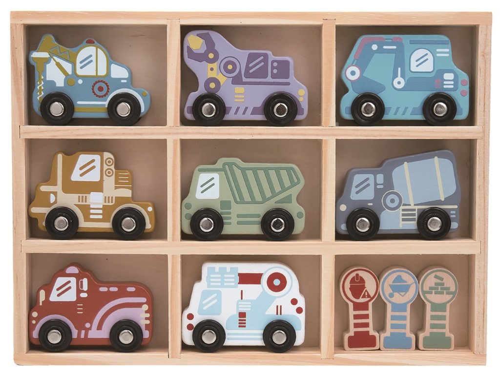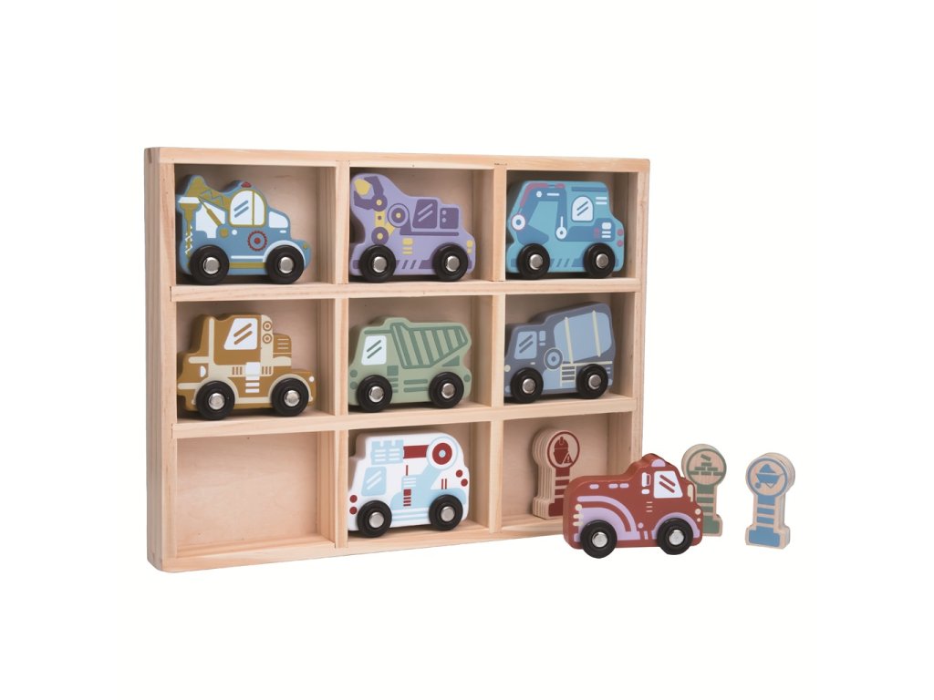 Sada 8 dřevěných autíček a 3 značek v praktické poličce je skvělým doplňkem dětského pokojíčku nebo herny. Obsahuje různá vozidla - cisternu, hasičské a policejní auto, bagr a další, která inspirují k představivé hře a podněcují dětskou fantazii. Autíčka jsou přizpůsobena pro malé dětské ruce, snadno se uchopují a dobře se s nimi manipuluje. Hraním si děti rozvíjejí jemnou motoriku, obratnost i koordinaci pohybů. Zároveň si při vytváření vlastních příběhů a situací posilují kreativní myšlení a komunikační schopnosti. Polička slouží nejen k praktickému uskladnění autíček, ale také jako stylový doplněk, který v dětském pokoji hezky vynikne a udrží hračky vždy pěkně po ruce. Hlavní vlastnosti: 8 autíček, 3 značky, poličkarozvíjí představivost a kreativitupodporuje představivou hrurozvíjí jemnou motoriku, koordinaci ruka-oko a obratnostzlepšuje sociální dovednostivhodné od 2 let