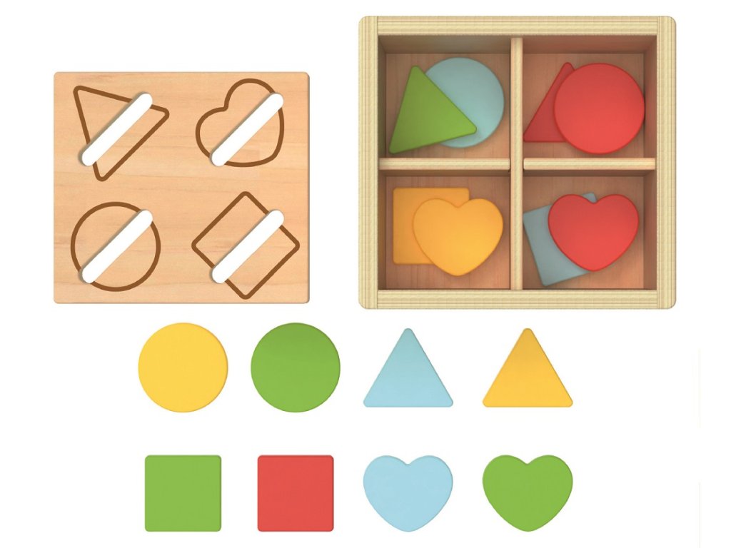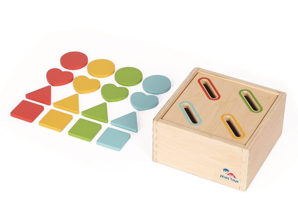 Velmi oblíbená hračka u dětí a batolat. Úkolem je prostrčit barevné tvary správným otvorem. Víko boxu je oboustranné. Můžete si zvolit, zda chcete třídit dle barev či tvarů. Tato vkládačka učí dítko rozpoznávat barvy a tvary a přitom procvičuje jemnou motoriku i koordinaci ruka-oko. Pomáhá vašemu dítěti soustředit se na konkrétní činnosti a úkoly. Vyrobeno ze 100% certifikovaného dřeva FSC®. Hlavní vlastnosti: třídění tvarů a barevvyrobeno ze 100% certifikovaného dřeva FSC®rozvíjí jemnou motoriku a koordinaci ruka-oko 18 dílů vkládačkyvhodné od 1,5 let Značka a certifikát FSC® (Forest Stewardship Council) zaručuje, že dřevo, ze kterého byl produkt vyroben, nebylo vytěženo nelegálně a pochází z lesů obhospodařovaných šetrným či přírodě blízkým způsobem, ve kterém jsou dodržovány přísné environmentální a sociální požadavky. Značka FSC® na výrobku znamená, že svým nákupem pomáháte chránit lesy a podporujete šetrné, odpovědné či přírodě blízké hospodaření, díky kterému jsou naše lesy stabilnější, zdravější, mají přirozenou druhovou skladbu a lépe odolávají negativním následkům klimatických změn.