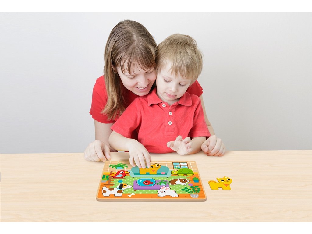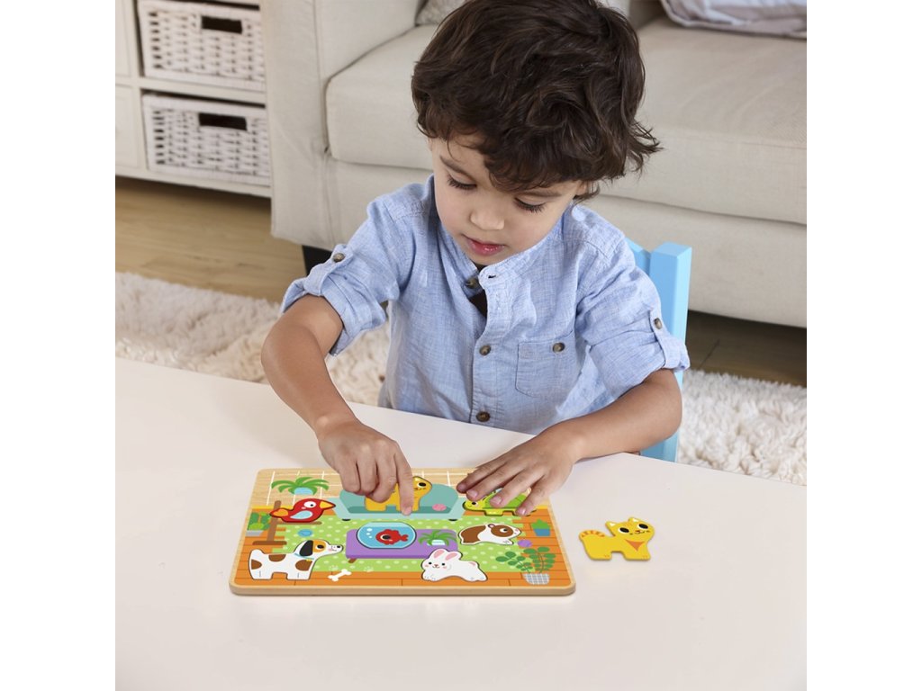 Jaký to krásný pohodový den. Pojďme si hrát s mazlíčky! Toto vkládací puzzle přináší skvělou možnost, jak u našich nejmenších trénovat jemnou motoriku, trpělivost a poznávání zvířátek. Skládá se ze základny a 7 odnímatelných dílků. Hračka je vyrobena z kvalitního FSC dřeva. Má krásné ilustrace, díky kterým může také posloužit jako milá dekorace v dětském pokojíčku. Hlavní vlastnosti: obsahuje 7 vkládacích dílůrozvíjí smyslové dovednosti procvičuje jemnou motoriku a trpělivostpestrobarevná ilustrace Značka a certifikát FSC® (Forest Stewardship Council) zaručuje, že dřevo, ze kterého byl produkt vyroben, nebylo vytěženo nelegálně a pochází z lesů obhospodařovaných šetrným či přírodě blízkým způsobem, ve kterém jsou dodržovány přísné environmentální a sociální požadavky. Značka FSC® na výrobku znamená, že svým nákupem pomáháte chránit lesy a podporujete šetrné, odpovědné či přírodě blízké hospodaření, díky kterému jsou naše lesy stabilnější, zdravější, mají přirozenou druhovou skladbu a lépe odolávají negativním následkům klimatických změn.