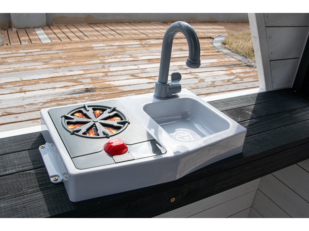 Kdo by netoužil po svém vlastním bydlení! Dopřejte svým dětem klidný kout, kde můžou odpočívat, mít soukromí a nerušeně si hrát. V tomto rozkošném domečku se budou cítit jako v pohádce. Velké boční okno nabízí krásný výhled do okolí a umožní proměnit domeček v prodejní stánek nebo obchod. V útulné kuchyňce, ve které nechybí varná deska s otočným červeným knoflíkem, dřez a základní nádobí, předvedou malí kuchaři a kuchařky své kulinářské dovednosti a připraví pro kamarády nebo rodiče chutné menu. Dalšími stylovými doplňky jsou hodiny, truhlíky po stranách vstupních dveří, ve kterých se budou krásně vyjímat květiny, praktický vstup pro pejska, který je překryt látkovým závěsem s motivem psí boudy. Domeček je vyroben ze dřeva a opatřen nátěrem v přírodních barvách. Bude skvělým doplňkem a ozdobou každé zahrady nebo menšího venkovního prostoru. Tak na co ještě čekáte? Zazvoňte na zvonek a pojďte dál! K napájení zvonku slouží 3 baterie LR44, které nejsou součástí balení. Dodáváno v rozloženém stavu s podrobným návodem na sestavení. Hlavní vlastnosti: funkční zvonek, kuchyňský kout s vybavením (varná deska, dřez, pánev, 2 ks náčiní), truhlíky, vstup pro pejskarozvíjí sociální dovednostiútulný designkvalitní a detailní provedenívyrobeno ze dřevavhodné pro hru více dětík napájení slouží 3 baterie LR44 (nejsou součástí balení)dodáváno v rozloženém stavunávod na sestavení je součástí balení Informace pro B2B partnery: dropshipping v rámci ČR!