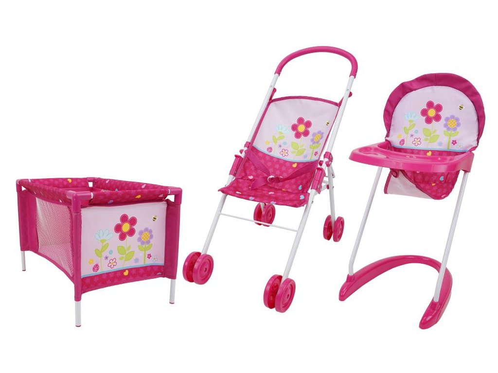 3dielna sada na hranie, kočík, stolička a postieľka - Kvety