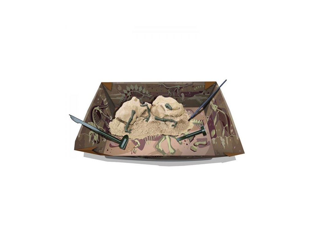 4M Dig a Dinosaur Skeleton: Velociraptor je poutavá a vzdělávací STEM sada z kolekce KidzLabs, která transformuje dětský pokoj na archeologické naleziště. Děti se s ní mohou vžít do role paleontologa a objevit kostru jednoho z nejrychlejších a nejchytřejších prehistorických predátorů – Velociraptora. Princip a zážitek: Zážitek z vykopávek: Hlavní součástí je sádrový blok, který ukrývá repliku kostry Velociraptora. Děti používají speciální nástroje k opatrnému odkrývání a vykopávání jednotlivých kostí, což simuluje skutečnou práci archeologa. Sestavení predátora: Jakmile jsou všechny kosti objeveny a očištěny, následuje fáze sestavení do kompletního, detailního modelu kostry. Vzdělávání a zábava: Sada rozvíjí soustředění, trpělivost, manuální zručnost a poskytuje fascinující vhled do světa dinousaurů a paleontologie. Součástí sady jsou často i kvízy a zajímavá fakta o Velociraptorovi. Sada obsahuje: Sádrový blok: Ukrytou kostrou Velociraptora. Nástroje pro vykopávání: Speciální dláto / nástroj pro hloubení. Čistící štětec. Díly kostry Velociraptora: Plastové kosti, které po sestavení tvoří celou kostru. Měkký vosk: Pro zajištění kloubů a stability modelu při sestavování a vystavení. Podrobný návod a kvíz. Hotový model: Délka: Sestavená kostra Velociraptora měří přibližně 20–21 cm na délku. Vystavení: Hotový model je skvělým exponátem pro dětský pokoj. Věk: Doporučeno pro děti od 8 let. Jedná se o skvělý dárek pro každé dítě se zájmem o historii, dinosaury a praktické vědecké projekty.