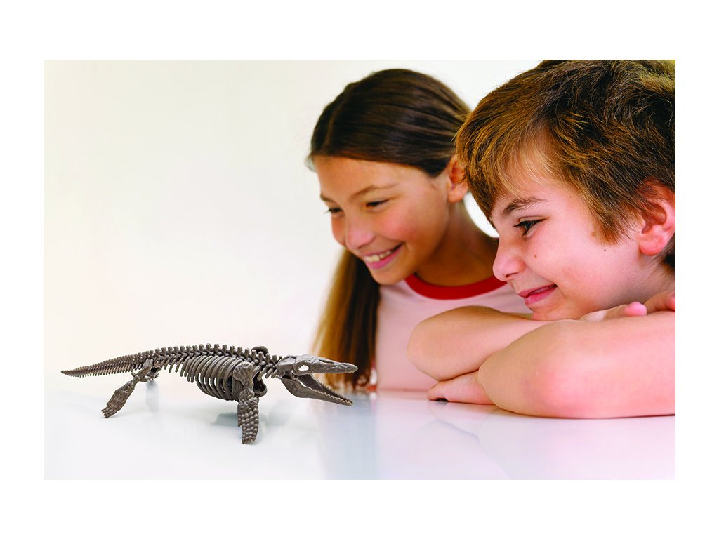 Části kostry Mosasaura jsou zaliti v sádře. Pokud si chceš postavit jeho kostru, musíš si části nejdříve vydlabat ze sádry. Sada rozvíjí dětskou motoriku a šikovnost.