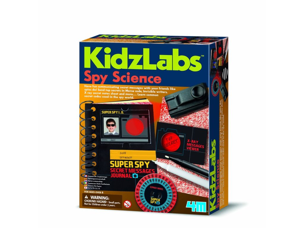Set pro špiony. Obsahuje pomůcky pro zasílání zpráv pomocí Morseovy abecedy, pro psaní neviditelných zpráv, pro tvorbu Super špionského deníku a mnoho dalšího.