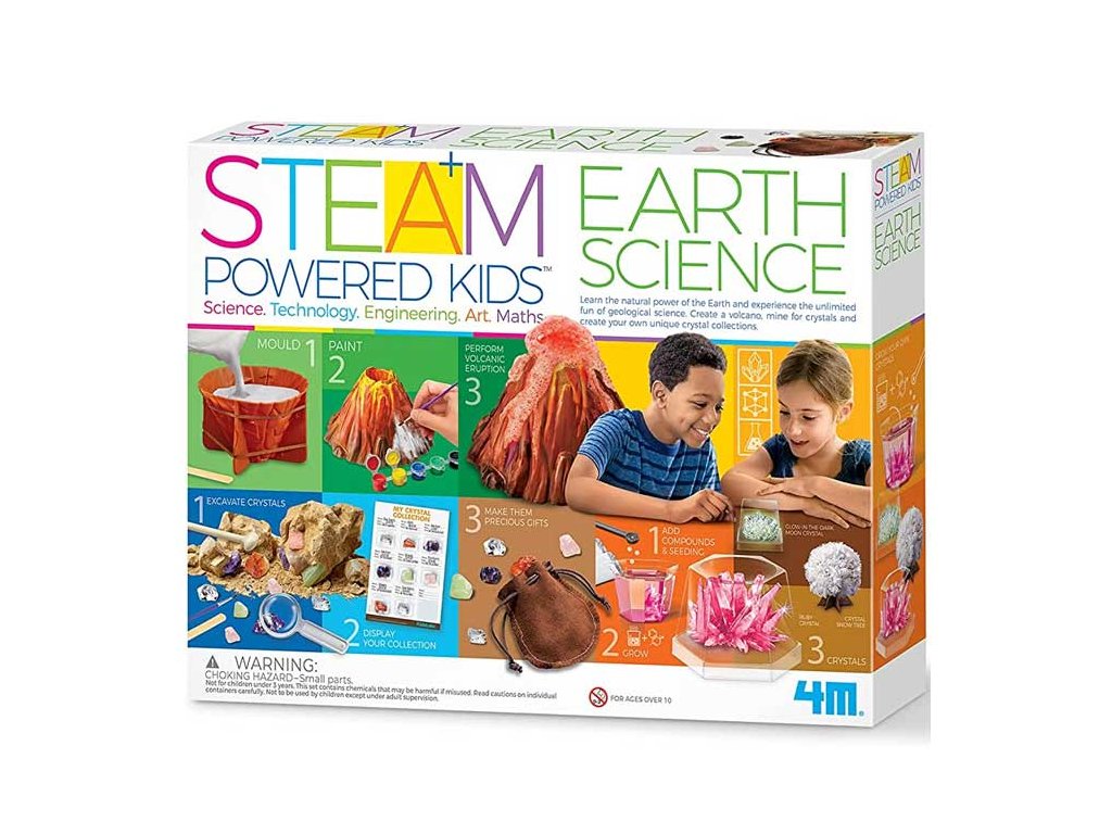 Sada 4M Earth Science je vzdělávací experimentální souprava zaměřená na geologii a vědu o Zemi. Je navržena tak, aby děti zábavnou a interaktivní formou seznámila s přírodními procesy a geologickými jevy. Jedná se o součást řady STEAM Powered Kids od výrobce 4M, což znamená, že se zaměřuje na principy Science, Technology, Engineering, Art a Maths.