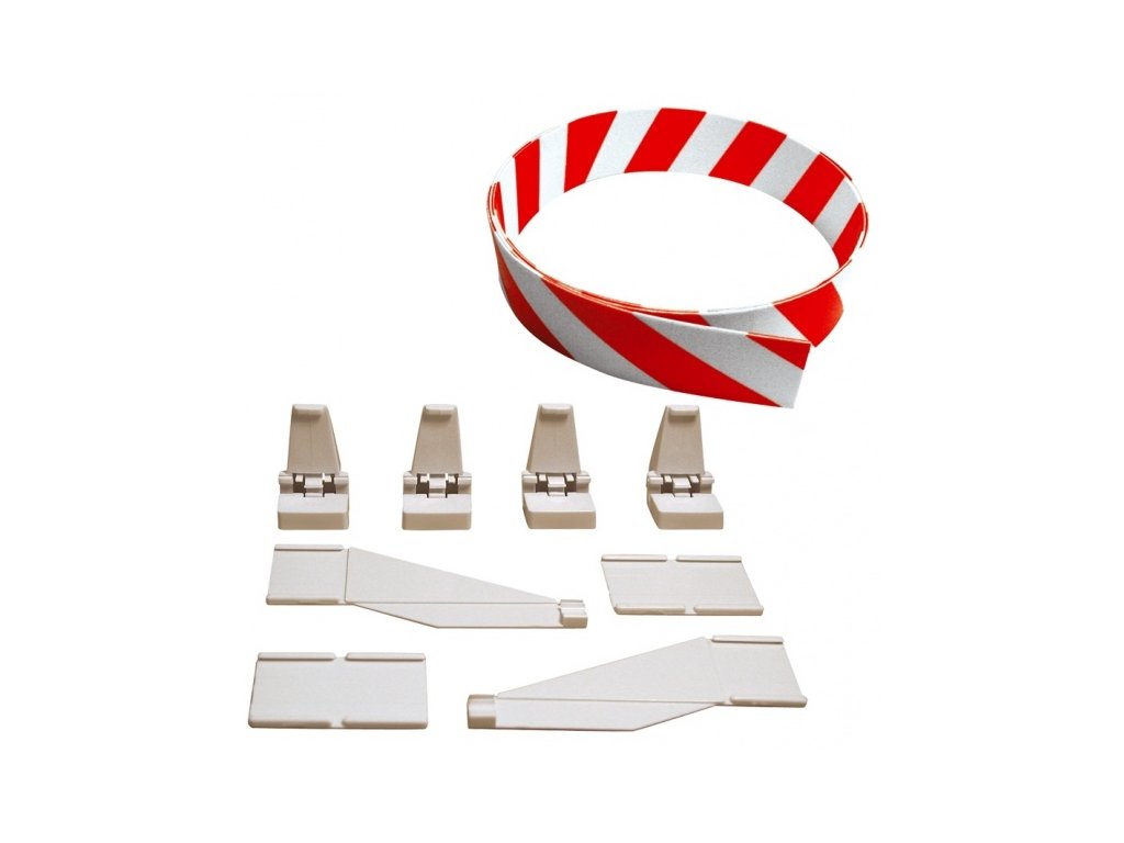 V balení jsou 3m mantinelu, 24x držáků na mantinel, 6x spojovací díl, 12x ukončení.