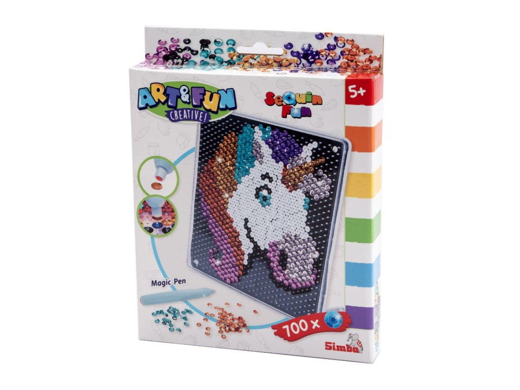 Sada k vytvoření obrázku jednorožce ze třpytivých flitrů na destičce o velikosti 18x18 cm. Součástí balení je 700 ks flitrů, magické pero a šablona kterou lze vložit na destičku. Destičku lze postavit na nožičky a vznikne tak krásná třpytivá dekorace.