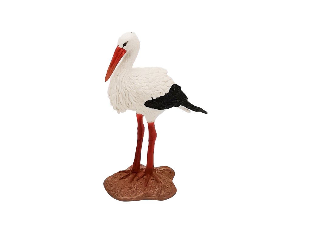 Čáp. Velikost 9 cm. Přesné rozměry 6,6x3,5x8,9 cm.
