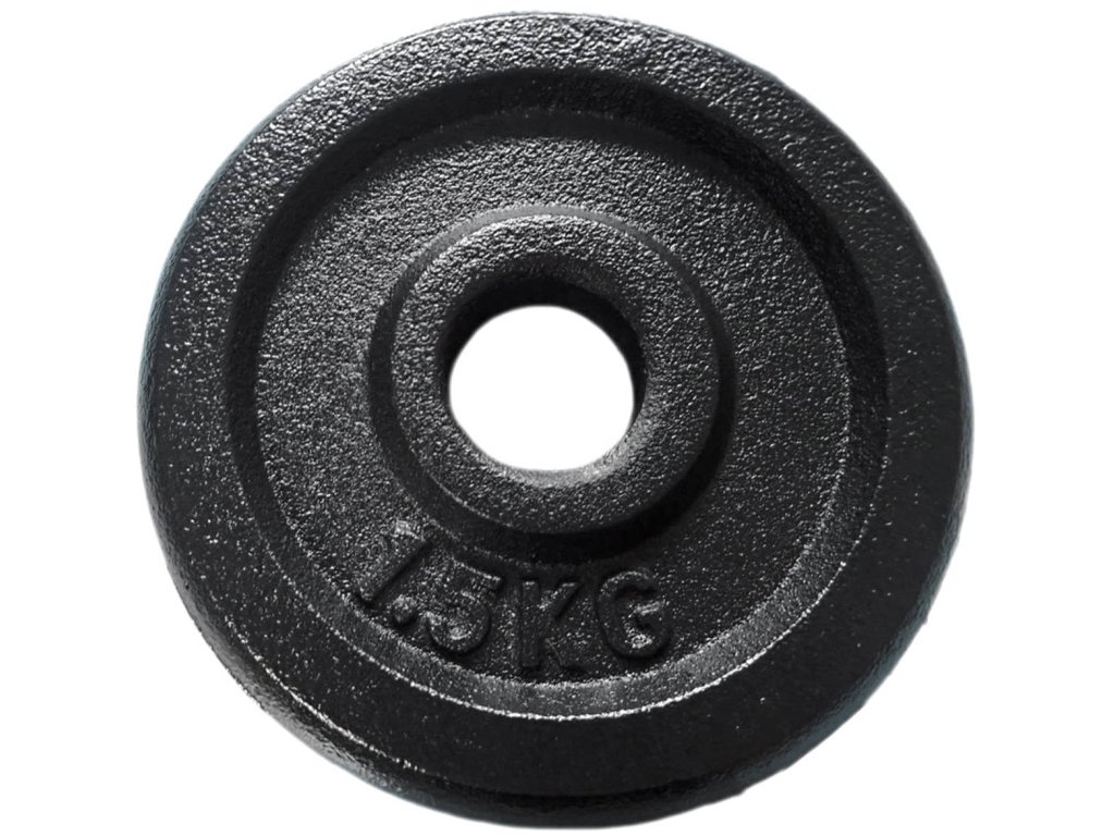 Závaží k činkám 1 x 1,5 kg, s otvorem na osu o průměru 25mm. Vnější průměr kotouče je 13 cm, šíře závaží 2 cm.