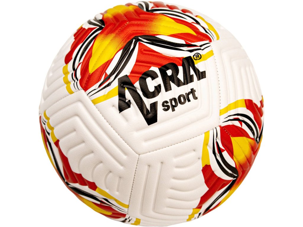 Vydejte se na hřiště s Acra Kopacím Míčem 07B ve velikosti 5! Tento strojově šitý míč je ideální volbou pro trénink, rekreační hru i zápasy, nabízí spolehlivost a dobrý výkon. Jeho nápadný design s bílým základem a výraznými červeno-žlutými detaily mu dodává dynamický a moderní vzhled. S Acra Kopacím Míčem 07B získáte spolehlivého partnera pro každou fotbalovou příležitost, který vám pomůže rozvíjet vaše dovednosti a užívat si hru naplno.