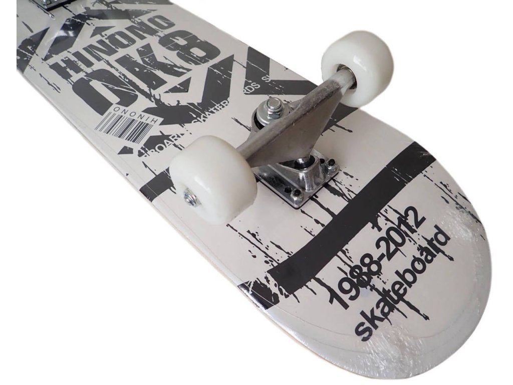 Skateboard závodní s protismykem na vrchní straně desky, zpevněný podvozek odolnější vůči zátěži - 5" = 12,8 cm šíře, PU kolečka 50 x 36 mm, ložiska ABEC - 1, rozměry desky jsou 31 x 8 inch (palců) = 78 x 20 cm, nosnost 70 kg.