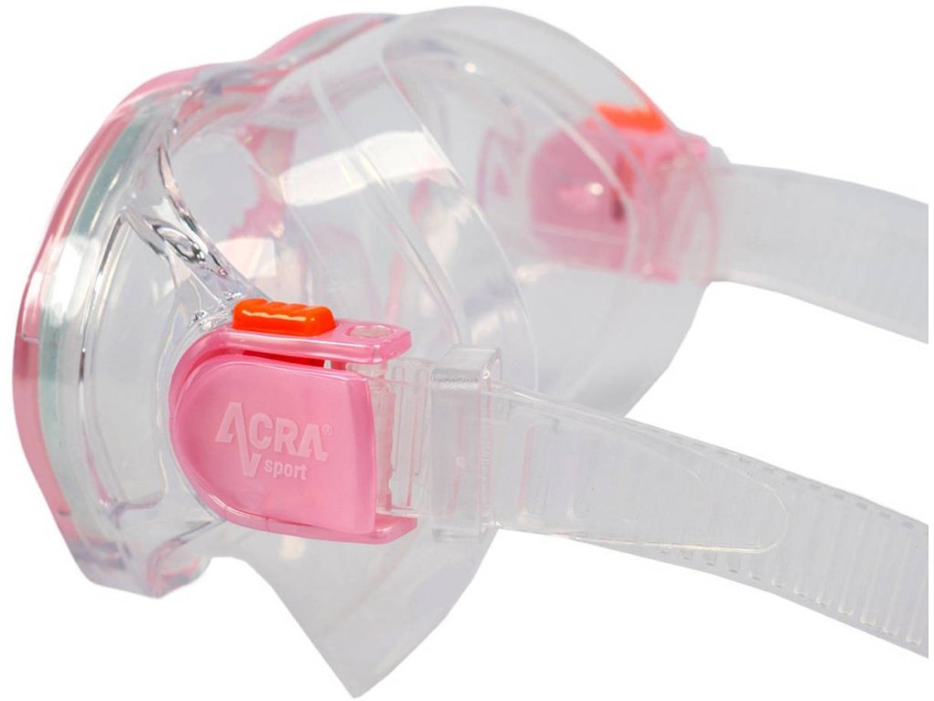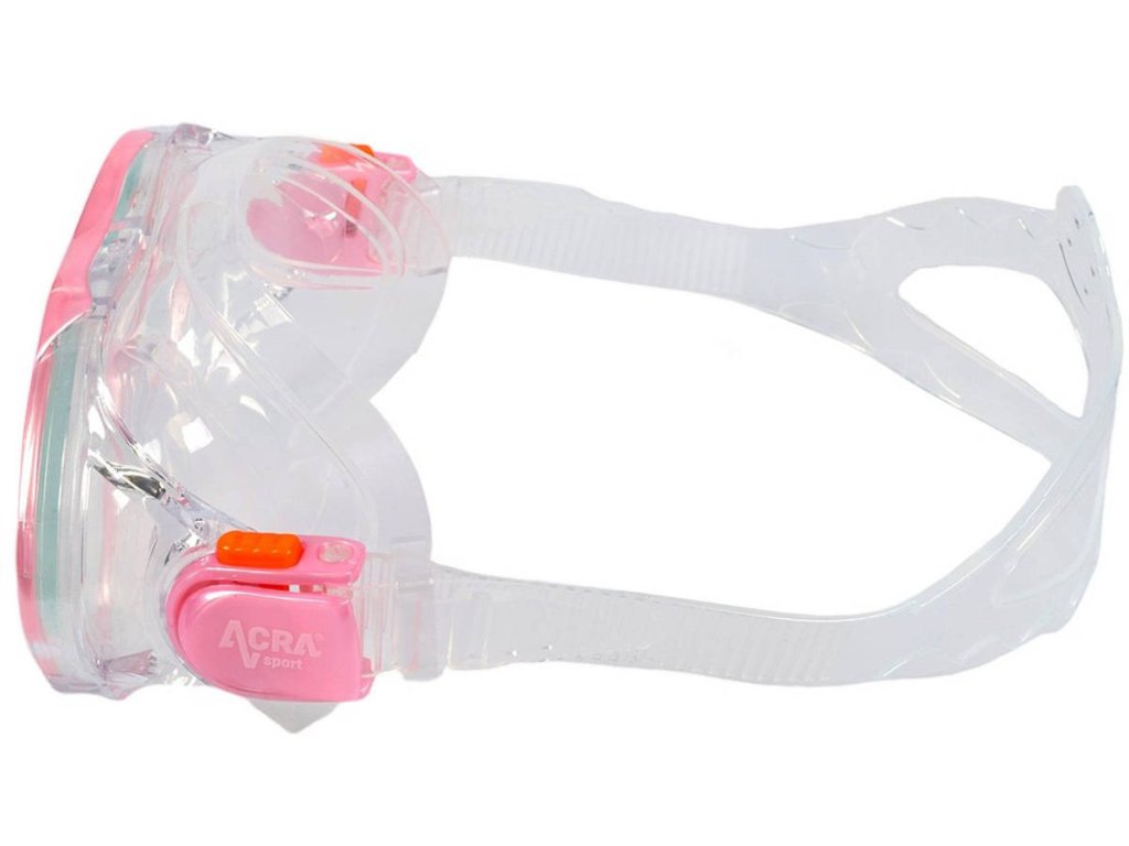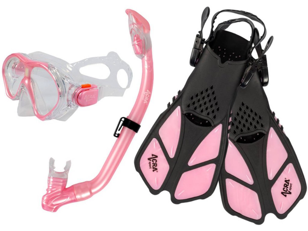 Dětská sada na šnorchlování Acra. Růžový šnorchlovací set 3in1. Součástí nastavitelné dětské ploutve, suchý šnorchl, plavecká maska.