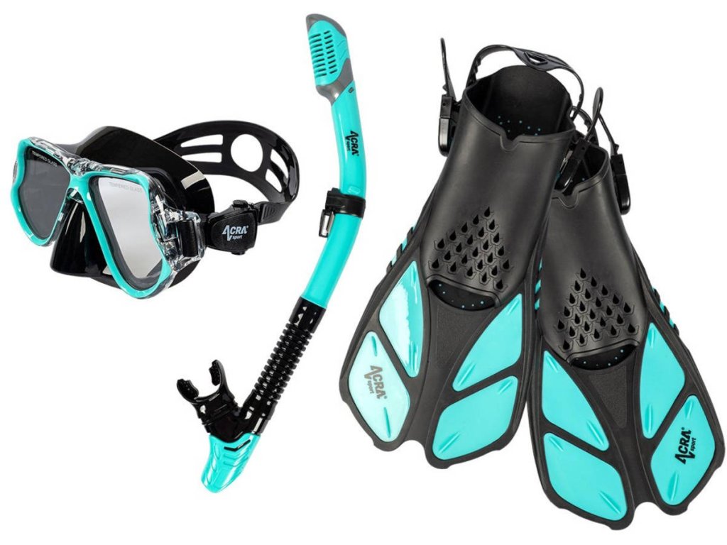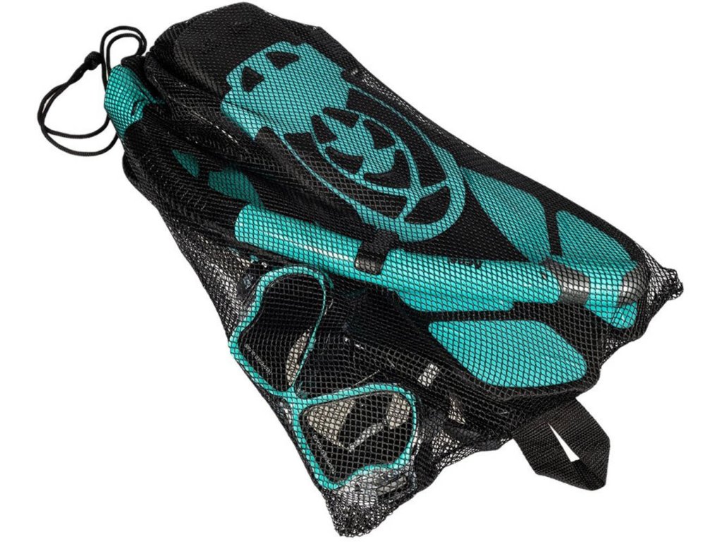 Tyrkysová sada na šnorchlování Acra sport, součástí nastavitelné ploutve, suchý šnorchl, plavecká maska. 3v1. Velikost L/XL. Ploutve 42-47.