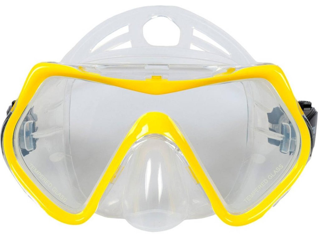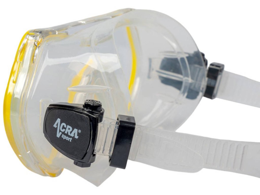 Potápěčská šnorchlovací maska s panoramatickým výhledem: 180° HD Panoramatický výhled. Vrobená ze čtyř okének pro panoramatický výhled s tvrzeným skleněným zorníkem a hypoalergenním silikonovým lemem, šnorchlovací maska Acra Sport odolá podvodnímu tlaku při potápění a šnorchlování a nabízí maximální pohodlí. Lem potápěčské masky je vyroben z měkkého a pružného silikonu a náustek z potravinářského silikonu je bezpečný, vytváří vodotěsné utěsnění s obličejem každého řidiče a dokonale se připevňuje k ústům bez zvláštního zápachu.