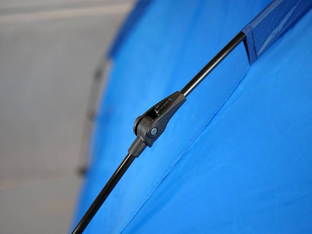 Stan stačí vyndat z obalu, uchopit za vrchní spojovací díl a stan se sám postaví díky pružným nosným prutům. Nohy stanu se napnou pomocí kolíků, ukotví se upínací šňůry a stan je připravený k použití. Demontáž je dobré provádět podle návodu, aby nedošlo k polámání prutů. Součástí výbavy jsou ocelové kolíky a upínací šňůry.