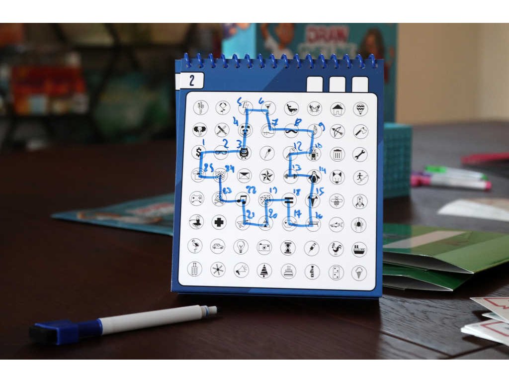 Jedním tahem je týmová party hra, kterou hrají všechny týmy současně. Vítězem je tým, který vyhraje 3 kola. Každý tým tvoří Napovídač a Hádač. Hráč v roli Napovídače kreslí tajemné slovo pro dané kolo tak, že propojí symboly na svém skicáku a následně tyto symboly pantomimou předvede svému Hádači. (Může vydávat i zvuky, ale nesmí používat slova!) Hráč v roli Hádače propojí symboly, které Napovídač pantomimou předvedl, aby nakreslil stejný obrázek a byl první, kdo uhodne tajemné slovo. Klíčem k vítězství je rychlost, protože vyhrává tým, který jako první uhodne tajemné slovo.
