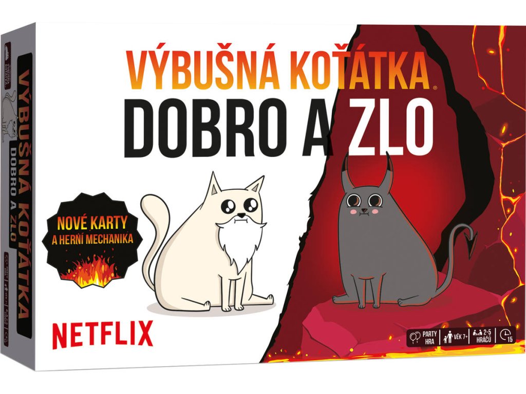 Dobro a zlo je verze oblíbené karetní hry Výbušná koťátka vytvořená na motivy animovaného seriálu Netflix. Nová pravidla. Nová koťátka. Nový zmatek. Jde o nejriskantnější verzi Výbušných koťátek.