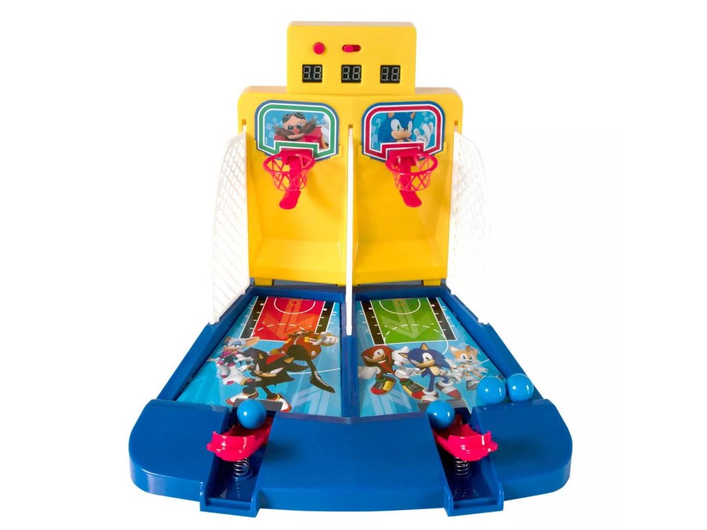 Arcade Basketball propojuje klasický basketbalový arkádový styl s ikonickou grafikou a zvuky Sonica. Hráči házejí míčky pomocí pružinových střílen do košů během časově omezených kol, s cílem dosáhnout nejlepšího skóre. Elektronický LED displej zobrazuje časovač a body. Barevná světla, efekty a licencovaná tématika zajišťují autentický arkádový nádech. Hra je ideální domácí zábavou pro děti od 6 let. Hra obsahuje: herní základnu se 2 mechanismy na střílení míčků, LED displej skóre s časovačem, 6 míčků (basketball), návod.