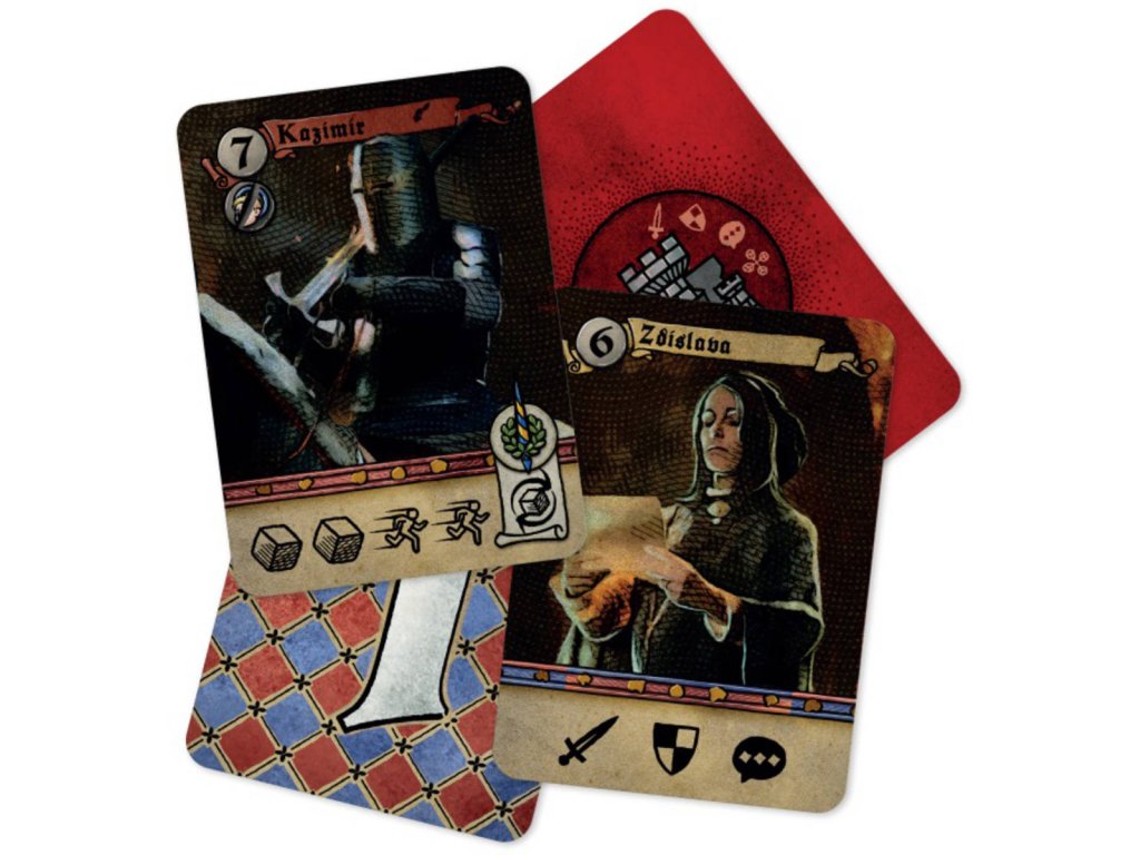 Obsah balení: 1 herní plán, 1 žeton začínajícího hráče, 4 oboustranné desky kapitánů, 4 figurky kapitánů, 12 plastových žetonů štítů, 71 karet družiníků, 4 oboustranné karty zatykačů, 10 karet dobývání, 2 žetony přízně panovníků, 34 žetonů událostí, 6 žetonů štěstí, 71 žetonů mincí, 8 kostek družiníků, 2 kostky panovníků, 11 karet pro hru jednoho hráče