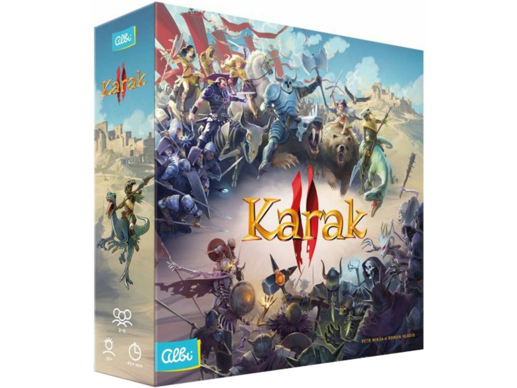 Společenská hra Karak 2 od Albi. Napínavá rodinná hra na hrdiny, ve které je potřeba nejen bojovat s nestvůrami, ale také budovat města a cvičit nové armády, abyste nestvůry porazili! K jeho hraní není třeba znát původní hru Karak.