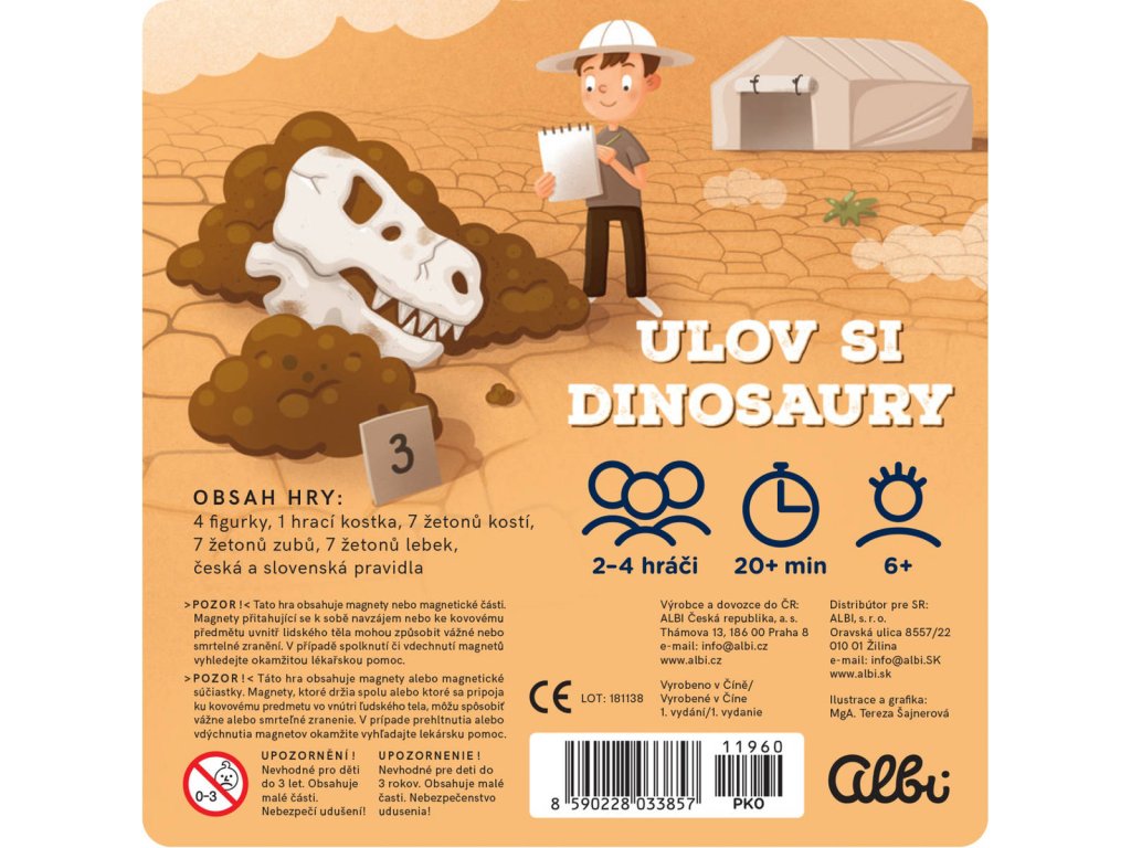 Ulov si dinosaury - magnetická společenská hra od Albi. Cílem hry je jako první získat 5 fosilií na pravěkém ostrově.