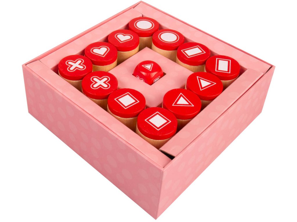 Zvukové pexeso obsahuje: 12 dřevěných válečků (6 dvojic), které při zatřesení vydávají zvuk, dřevěná hrací kostka se symboly, návod na 4 různé hry.