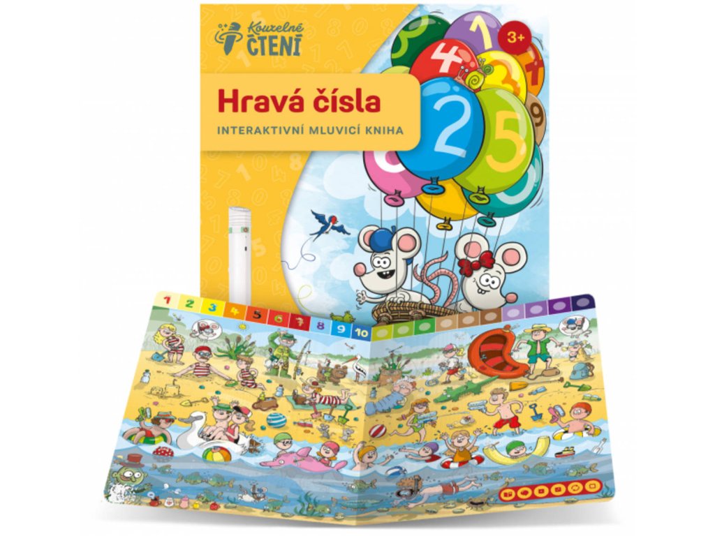 Interaktivní mluvící dětská kniha Hravá čísla z edice Kouzelné čtení seznámí děti od 3 let s čísly a naučí je počítat do dvaceti. Knížka děti zavede je na dvorek, do hračkářství, k vodě nebo třeba do korun stromů. A proč zrovna tam? Budete se divit, ale všude je toho hodně k počítání. A o tom děti přesvědčí také průvodci, myška Matylda a myšák Ludva. Děti si mohou vyzkoušet i svůj postřeh. Najdou malé průvodce na karnevalu, v moři, na louce nebo v mumraji na pouti? Pojďme to zjistit. Kniha Hravá čísla obsahuje přes 2 100 zvukových stop.