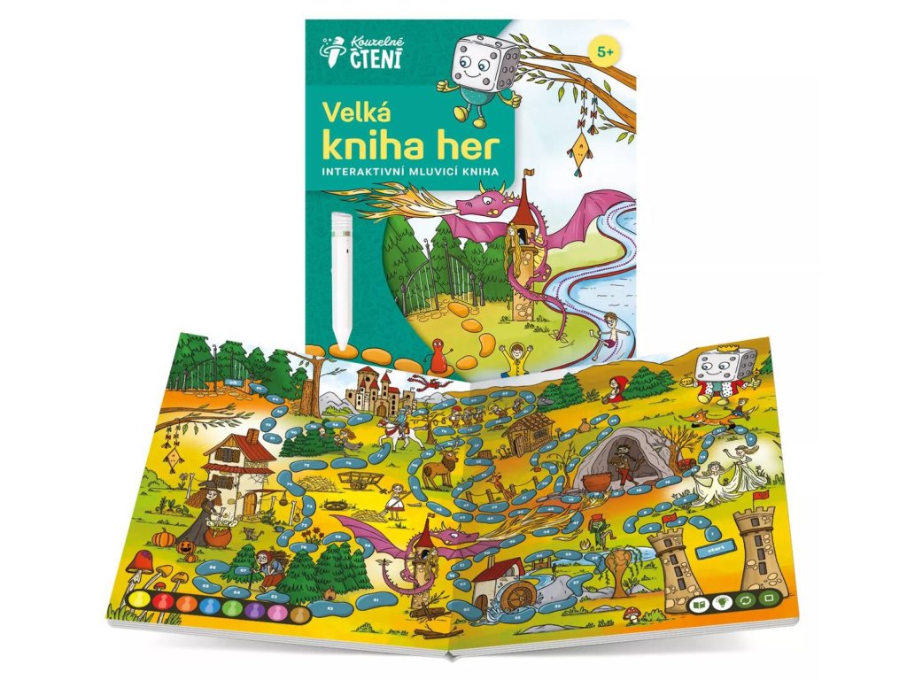 Velká kniha her z edice Kouzelné čtení obsahuje celkem 8 deskových her - na každé dvoustraně knihy jednu.
