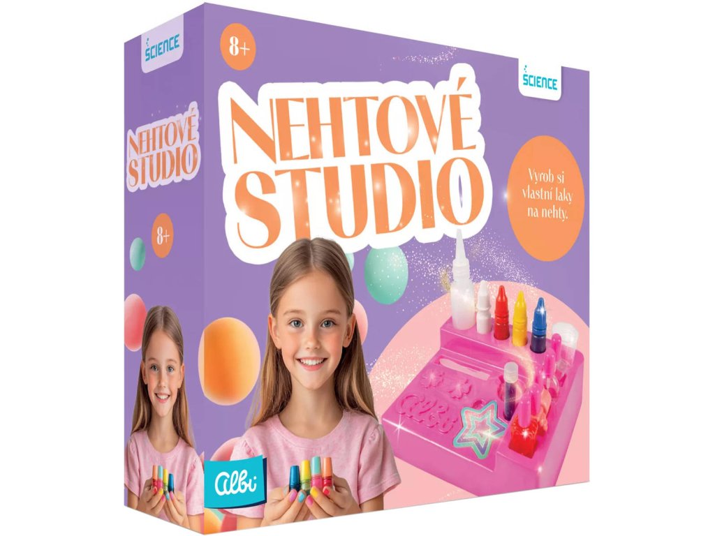 Vyrobte si netoxický průhledný nebo barevný lak na nehty s kreativní sadou Nehtové studio z edice Albi Science. Nehty můžete opilovat pilníkem, nalakovat a dozdobit svítícími samolepkami. Laky jsou slepovací, a tudíž k jejich odstranění není potřeba odlakovač. Součástí sady je i příručka, ve které se dozvíte zajímavosti ze světa laků na nehty, jako například nejpopulárnější lak světa, největší počet vlastněných lahviček s lakem apod. Z jedné sady lze vytvořit 5 lahviček laku, takže dokáže zabavit nejen jedntlivce, ale i více dětí najednou. Malé parádnice si vyzkouší míchání barev, podpoří svou zručnost a tvořivost a hlavně si společně užijí spoustu zábavy! Všechny komponenty jsou hezky uložené v kosmetickém organizéru.