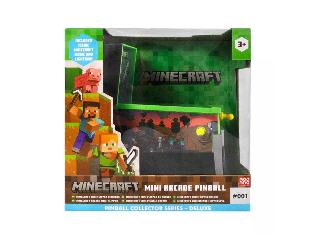 Tento stolní pinball nabízí autentický arkádový zážitek. Atraktivní motiv Minecraftu zaujme nejednoho fanouška tohoto pixelového světa.