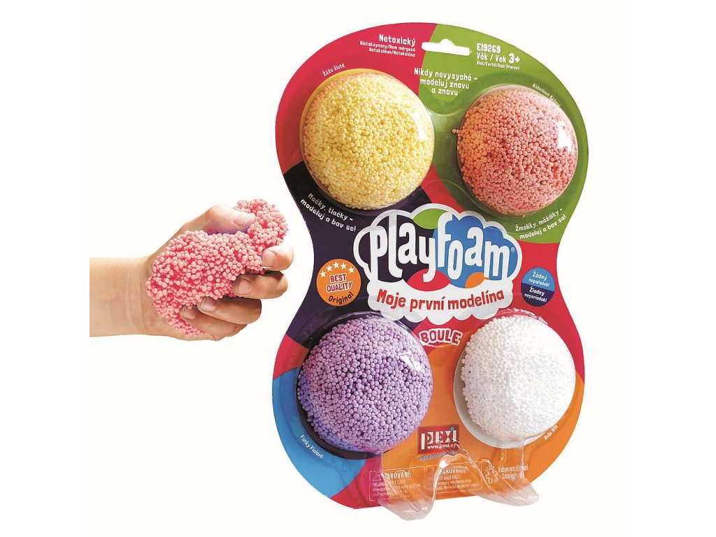 Modelína, která nešpiní, vhodná pro děti od 3 let do 10 let. PlayFoam® Boule 4pack - G - čtyři "dívčí" barvy (žlutá, červená, fialová, bílá). Lehoučká, nešpinivá, netoxická a nevysychající modelína nové generace. Žádný nepořádek, spousty legrace! Děti vytvoří vše co je napadne a uklizeno máte za okamžik. Pěnová modelína PlayFoam® dovolí nejen předškolním dětem vyjádřit jejich kreativitu - bez nepořádku a bez nutnosti velkého uklízení!Prostě zmáčkni PlayFoam®, vytvaruj co chceš a zase ji rozmačkej a začni úplně znovu. Pokud jsi zručnější, dokážeš jednotlivé barvy dokonce zcela oddělit. PlayFoam® nikdy nevyschne, takže modelování nikdy nekončí. A protože se modelína PlayFoam® nelepí na stůl, koberec ani sedačky, můžeš si jí s sebou vzít kam chceš a užít si zářící dobrodružství i na cestách! Co je vlastně PLAYFOAM®:Základem modelíny Playfoam® jsou drobné měkké kuličky z pěnového materiálu spojené speciálním pojivem. Kuličky můžeš klidně jednu podruhé odebírat.Modelína je opravdu lehoučká, takže z ní můžete vytváře i velá díla. Ale i když vytváříte velké modely a stavby, modelína se nehroutí a stále drží svůj tvar. (Pouze kdybyste výtvory vystavili velikému teplu může pojivo ztrácet pevnost. Např. přímé letní sluníčko nemá modelína moc ráda ;-)Pro zpevnění dlouhých a tenkých tvarů např. stožáry, kmenu stromů nebo květin, vložte do hmoty dřívko (např. nanukovou tyčku apod.) nebo využijte chlupaté drátky , které obalíte modelínou. (drátky najdete také v některých sadách Playfoam®)Speciální pojivo je nealergenní a netoxické a udrží kuličky vzájemně při sobě, ale nepřichytí se na nábytek nebo předměty ani na podlahu. Dokonce i běžný smyčkový koberec přežije kontakt s modelínou Playfoam® bez úhony! Stačí přiložit malou kuličku z modelíny na odpadlý kousek a je uklizeno.Toto speciální pojivo bylo vyvíjeno v laboratoři přes 2 roky tak, aby splnilo bezpečnostní předpisy a náročné požadavky na jeho speciální vlastnosti. Dokonce ani při dlouhém hraní, kdy se hmota zahřívá v dlaních, nepřichází o své důležité vlastnosti, pro které je u maminek tak Playfoam® ceněná.(V obchodech i e-shopech možná narazíte na podobně vypadající kopie Playfoam®, ale jen u Playfoam® máte jistotu, že se nerozpadá při hraní, ani se nelepí na vše, čeho se dotkne.) Plastová pouzdra, které vypadají jako bubliny, ti pomohou ochránit modelínu před ušpiněním, pokud po hraní hmotu opět umístíš zpátky do bubliny. Modelína bez nepořádku-nezašlape se do koberce, nepřilepí na sedačku v autě ani na nábytek! Modeluj na stole, na koberci nebo v i autě! Balení obsahuje barvy: žlutáčervenáfialovábílá Hlavní vlastnosti: ideální pro rozvíjení zručnosti a kreativity podporuje smyslový a hmatový rozvoj nikdy nevyschne nelepí na podložku a nábytek