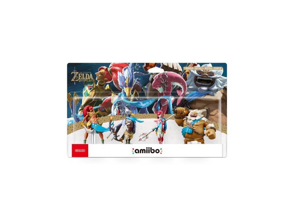 Čtyři amiibo figurky na motivy Šampionů z The Legend of Zelda: Breath of the Wild – Daruk, Mipha, Revali a Urbosa.