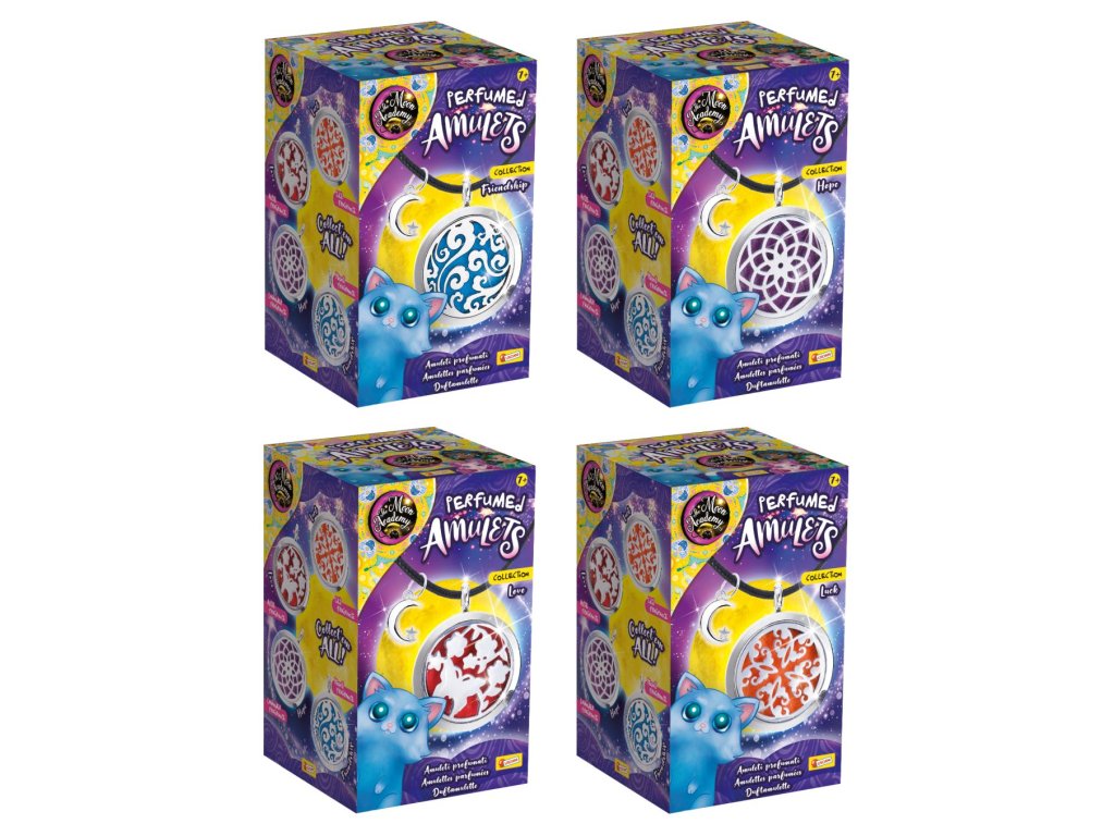 Kolekce 4 parfémovaných amuletů k výrobě a nošení! Štěstí, láska, zdraví a přátelství: každý amulet se týká jedné z těchto kategorií a díky své voňavé a barevné síle vás ochrání a pomůže vám překonat jakoukoli těžkost!