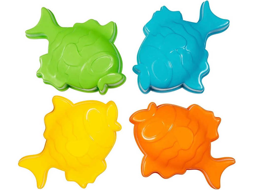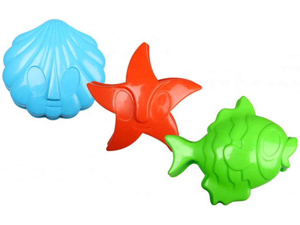 Velké XL formičky na písek od Androni, ve tvaru mořských zvířátek. Hračka ve třech variantách provedení, po čtyřech barvách od každé. Baleno volně.