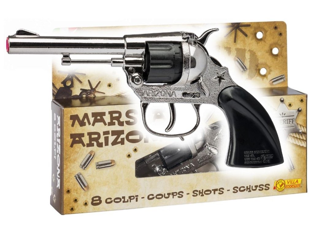 Kapslíková pistole kovbojská, 8miranná, kovová. Vhodné pro děti od 6 let.