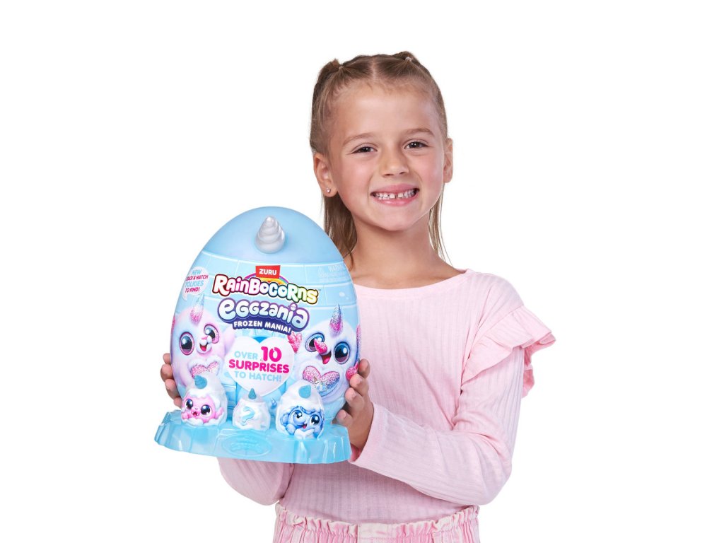 Rainbocorns Eggzania Frozen Mania vás zavede do ledového kouzelného světa Eggzania! Vylíhněte mrazivé vajíčko a objevte více než 10 zasněžených překvapení - každé kouzelnější než to předchozí. Možná narazíte i na vzácného sněhuláka, který se ukrývá uvnitř!