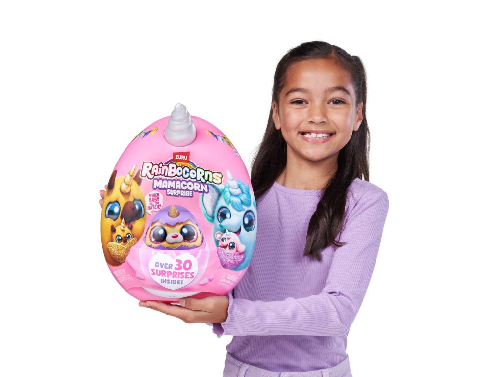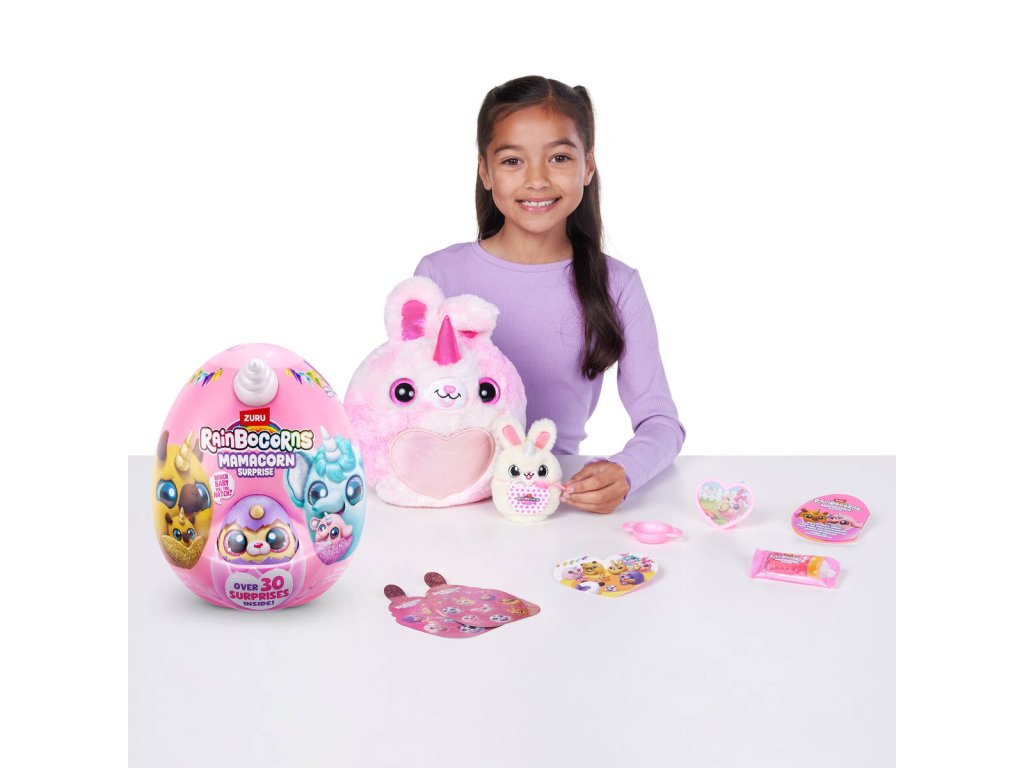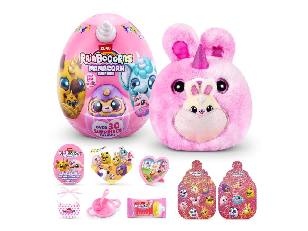 Rainbocorns Mamacorn Surprise přináší do světa Rainboville novou kouzelnou maminku! Rozbijte barevné vajíčko a objevte více než 30 překvapení. Uvnitř na vás čeká jeden ze sedmi roztomilých plyšáků Mamacorn a také tajemné miminko - které z nich se vylíhne právě vám?